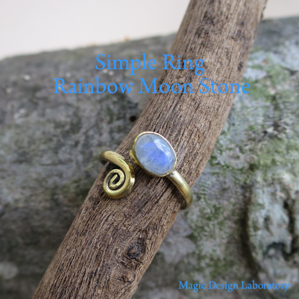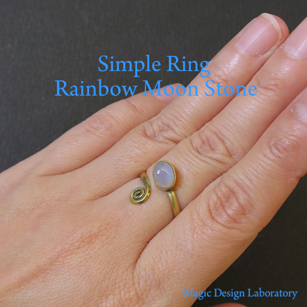 【レインボームーンストーン】シンプルリング ゴールドカラー