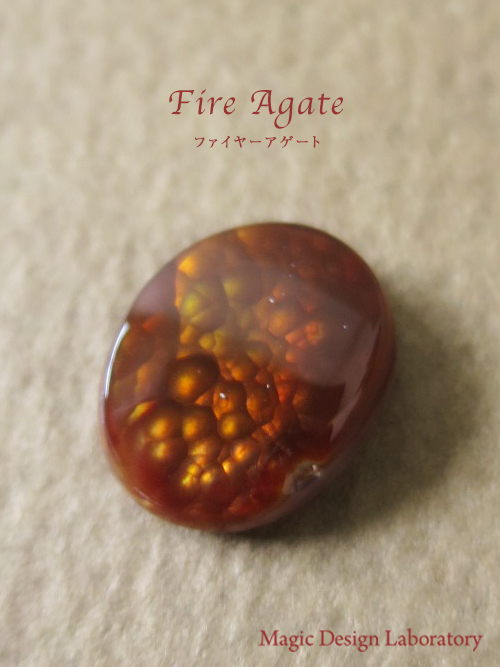 ファイアーアゲートはアゲート(瑪瑙)の変種であり別名をその遊色の美しさからゲートオパールとも呼ばれます。
